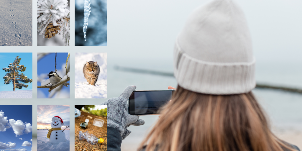 Bestem dere for x antall ting dere skal prøve å finne og ta bilde av før dere går ut. Ta med kamera eller telefon og let dere frem til spennende motiver. Et eksempel på en liste kan være: Harespor, kongle, istapp, furutre, en fugl, et dyr, en sky, en snømann, søppel på bakken.